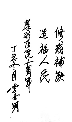 原卫生部钱信忠部长为医院题写院名