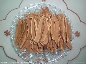 灵芝来源很多,依色泽分为赤芝、黄芝、白芝、青芝、黑芝、紫芝六种,其中赤芝和紫芝在我国的分布较广,我院灵芝的来源便是多孔真菌科赤芝Ganoderma lucidumLey-ss.ex Fr.) Karst或紫芝Ganoderma sinense Zhao,XuetZhang的干燥子实体,主产于四川、浙江、江西、湖南等地,一般为栽培品。外形呈伞状,菌盖肾形、半圆形或近圆形,直径10~18cm,厚1~2cm,皮壳坚硬,黄褐色至红褐色,有光泽,具环状棱纹和辐射状皱纹,边缘薄而平截,常稍内卷。菌肉白色至淡棕色。菌柄圆柱形,侧生,少偏生,长7~15cm,直径1~3.5cm,红褐色至紫褐色,光亮。气微香,味苦涩。
